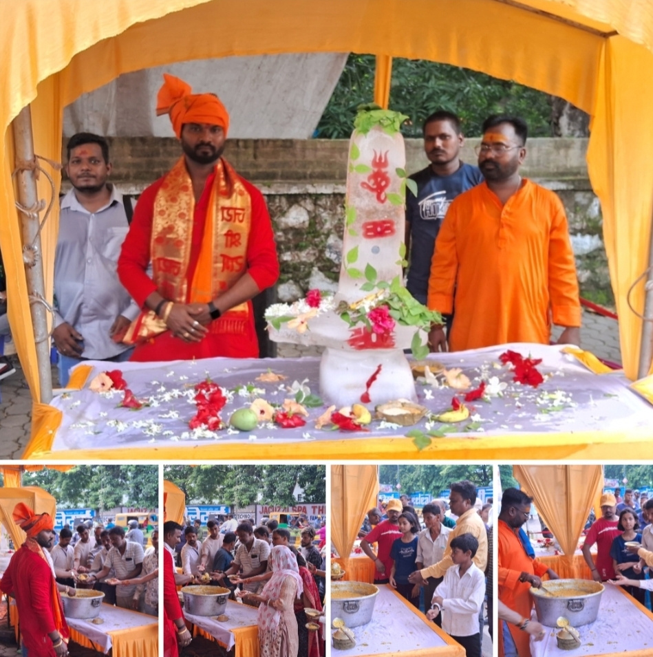 जमशेदपुर (झारखंड)। कदमा रंकिणी मंदिर के समीप हर साल की भाती इस साल भी सुबह सावन के उपलक्ष में सोमवार सुबह आयोजित राजु राव, शिवा लाल, अभिषेक जायसवाल, टिंकू कुमार अपने सहयोगियों के साथ मिलकर बर्फ के द्वारा बने आकृति शिवलिंग को रखकर शिव की पूजा-अर्चना कर अपने सभी सहयोगियों के साथ मिलकर महाप्रसाद भोग का वितरण किया।