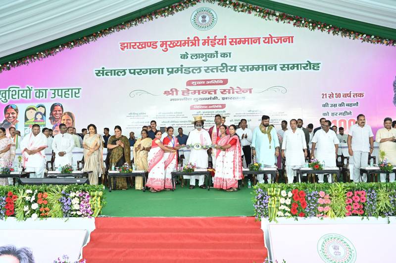 मुख्यमंत्री हेमन्त सोरेन दुमका के जामा स्थित पांजनपहाड़ी में आयोजित झारखंड मुख्यमंत्री मंईयां सम्मान योजना के संताल परगना प्रमंडल स्तरीय कार्यक्रम में हुए सम्मिलित