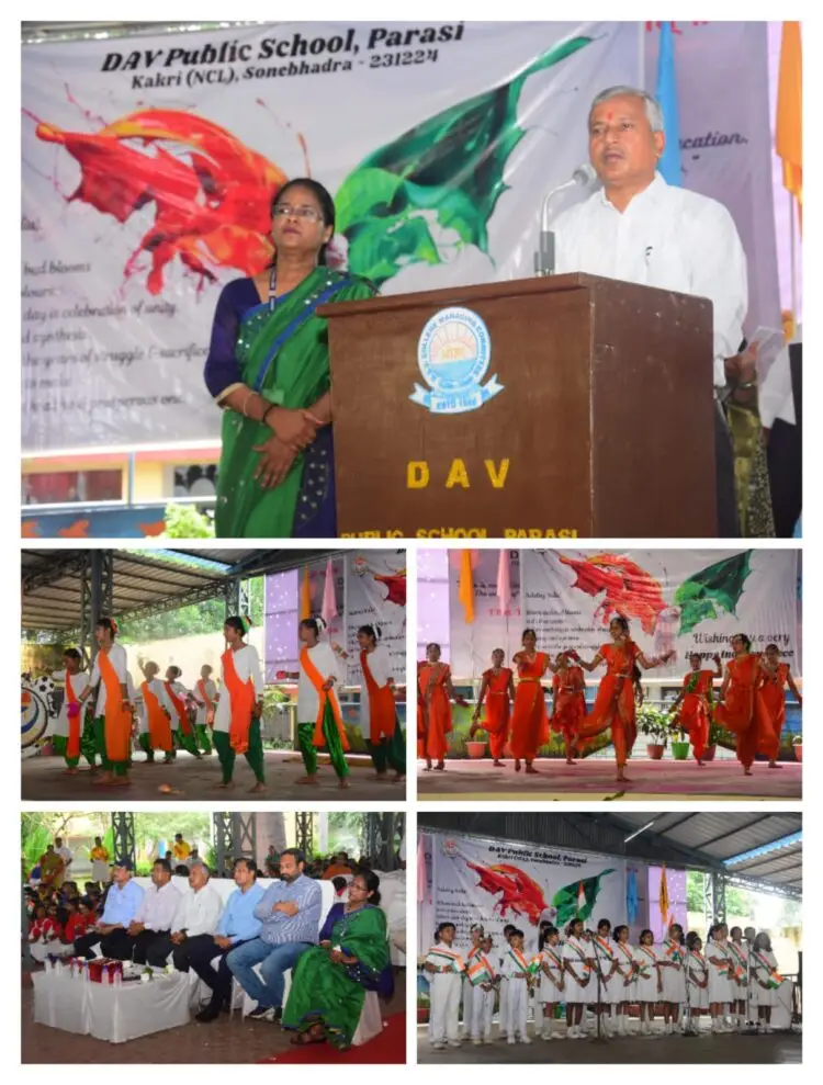 अनपरा(सोनभद्र)। डी.ए.वी. परासी में 15 अगस्त 2025 को 79वाँ स्वतंत्रता दिवस हर्षोल्लास के साथ मनाया गया। इस अवसर पर आयोजित कार्यक्रम का शुभारम्भ मुख्य अतिथि ककरी परियोजना के महाप्रबंधक प्रदीप कुमार जाना के हाथों ध्वजारोहण के साथ हुआ। इस अवसर विशेष पर विशिष्ट अतिथि के रूप मे ककरी परियोजना के सभी विभागों के प्रमुख उपस्थित थे।