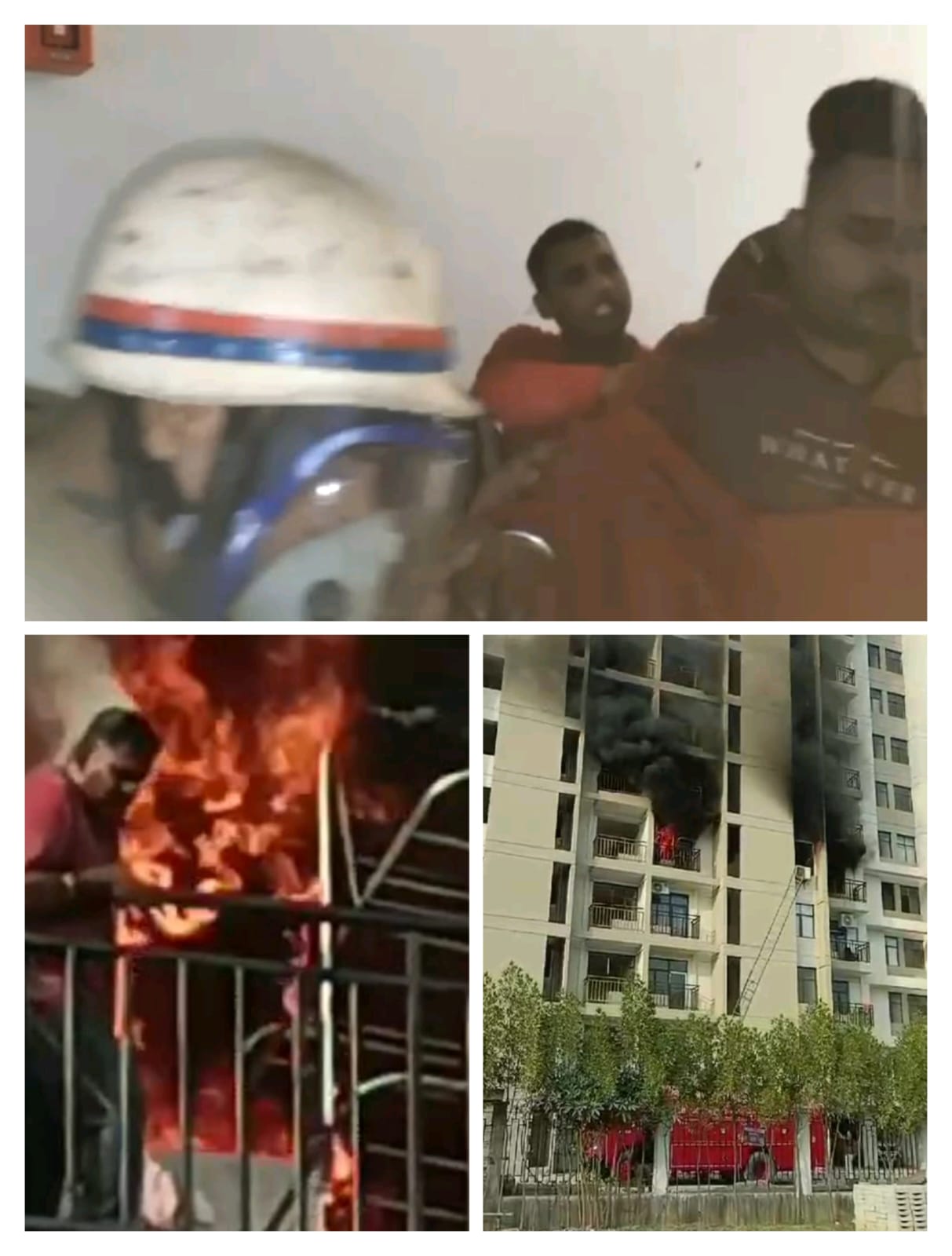 सरोजनीनगर के दरोगा खेड़ा स्थित पार्थ बिल्डिंग के फ्लैट में लगी भीषण आग, एक घायल