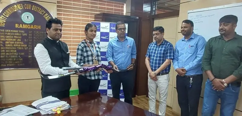 रामगढ़ (झारखंड)। मंगलवार को उपायुक्त, कार्यालय कक्ष में उपायुक्त रामगढ़ श्री चंदन कुमार द्वारा जिंदल स्टील एंड पावर लिमिटेड के अधिकारियों की उपस्थिति में पतरातू निवासी तीरंदाज खिलाड़ी तमन्ना वर्मा को सीएसआर के तहत आर्चरी किट उपलब्ध कराया गया।