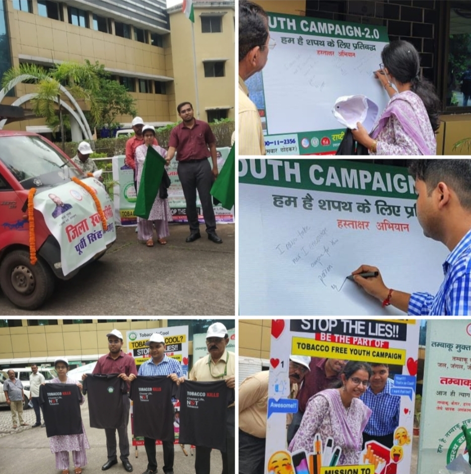जमशेदपुर (झारखंड)। जिला दण्डाधिकारी सह उपायुक्त श्री अनन्य मित्तल के निर्देशानुसार जिले में 60 दिवसीय तम्बाकू मुक्त युवा अभियान का शुभारंभ समाहरणालय से जागरूकता रथ को हरी झंडी दिखाकर किया गया। उप विकास आयुक्त ने जागरूकता को हरी झंडी दिखाई।