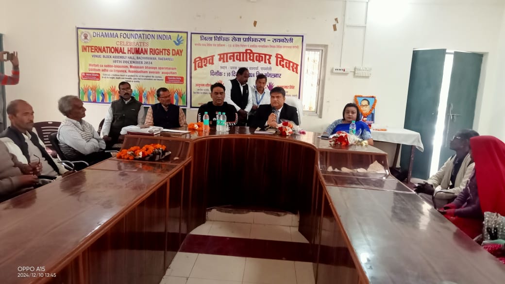 रायबरेली। उ0प्र0 राज्य विधिक सेवा प्राधिकरण, लखनऊ के निर्देशानुसार व माननीय जनपद न्यायाधीश/अध्यक्ष, जिला विधिक सेवा प्राधिकरण, रायबरेली राजकुमार सिंह के दिशा-निर्देशन में विश्व मानवाधिकार दिवस के अवसर पर जिला विधिक सेवा प्राधिकरण रायबरेली द्वारा तहसील-महराजगंज के अन्तर्गत विकास खण्ड-बछरावाँ में विशेष जागरुकता शिविर का आयोजन किया गया।