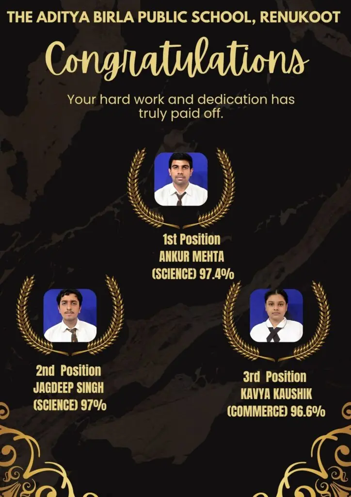 आदित्य बिड़ला पब्लिक स्कूल रेणुकूट में शत-प्रतिशत रहा कक्षा 12वीं का परीक्षा परिणाम
