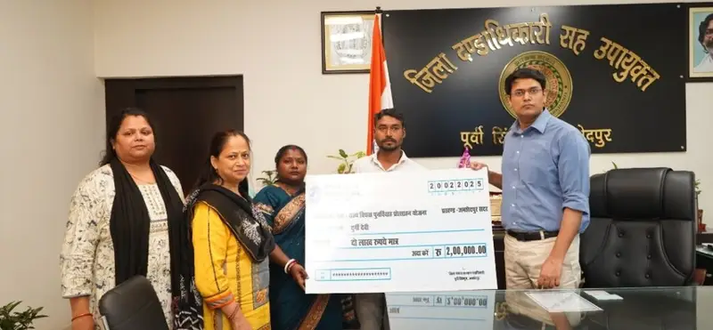 जमशेदपुर (झारखंड)। राज्य विधवा पुनर्विवाह प्रोत्साहन योजना अंतर्गत पूर्वी सिंहभूम जिला की पहली लाभुक श्रीमती दुर्गी देवी, प्रखंड जमशेदपुर को योजना के तहत 2 लाख रूपए की प्रोत्साहन राशि का चेक जिला दण्डाधिकारी सह उपायुक्त अनन्य मित्तल द्वारा कार्यालय कक्ष में प्रदान किया गया।