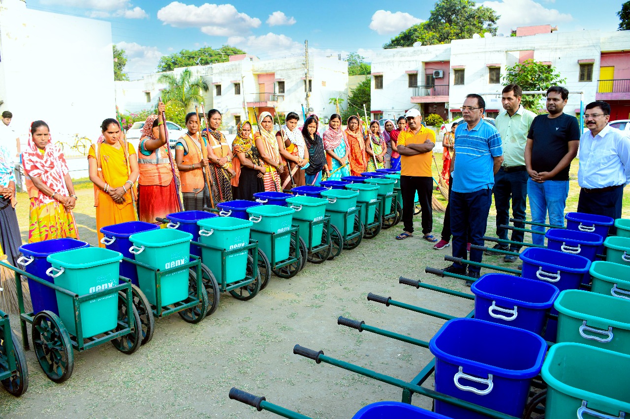 एनटीपीसी सिंगरौली द्वारा स्वच्छता अभियान के अंतर्गत डस्टबिन वितरण का कार्यक्रम की गई आयोजित
