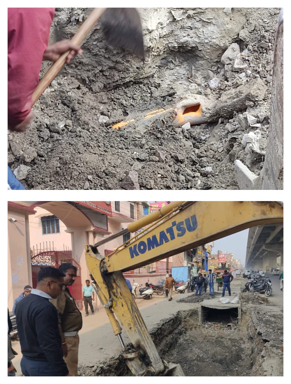 जिससे कि कोई हादसे का शिकार न हो। मौके पर सूचना पाते ही स्थानीय पुलिस पहुंची और गैस पाइप लाइन सप्लायर अधिकारियों को सूचना देकर गैस सप्लाई को बंद कराया तब जाकर आसपास के लोगों ने राहत की सांस ली। गैस पाइप लाइन सप्लायर संबंधित अधिकारियों ने बताया कि पीएनसी एवं नेशनल हाइवे बिना सूचना दिए नाले की खुदाई कर रहे थे , यदि सूचना देकर खुदाई करते तो गैस पाइप लाइन नहीं कटती।