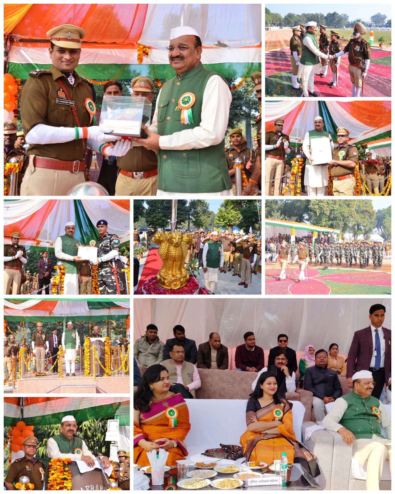 उद्यान मंत्री दिनेश प्रताप सिंह ने गणतंत्र दिवस पर पुलिस लाइन में ध्वजारोहण कर राष्ट्रीय ध्वज को सलामी दी