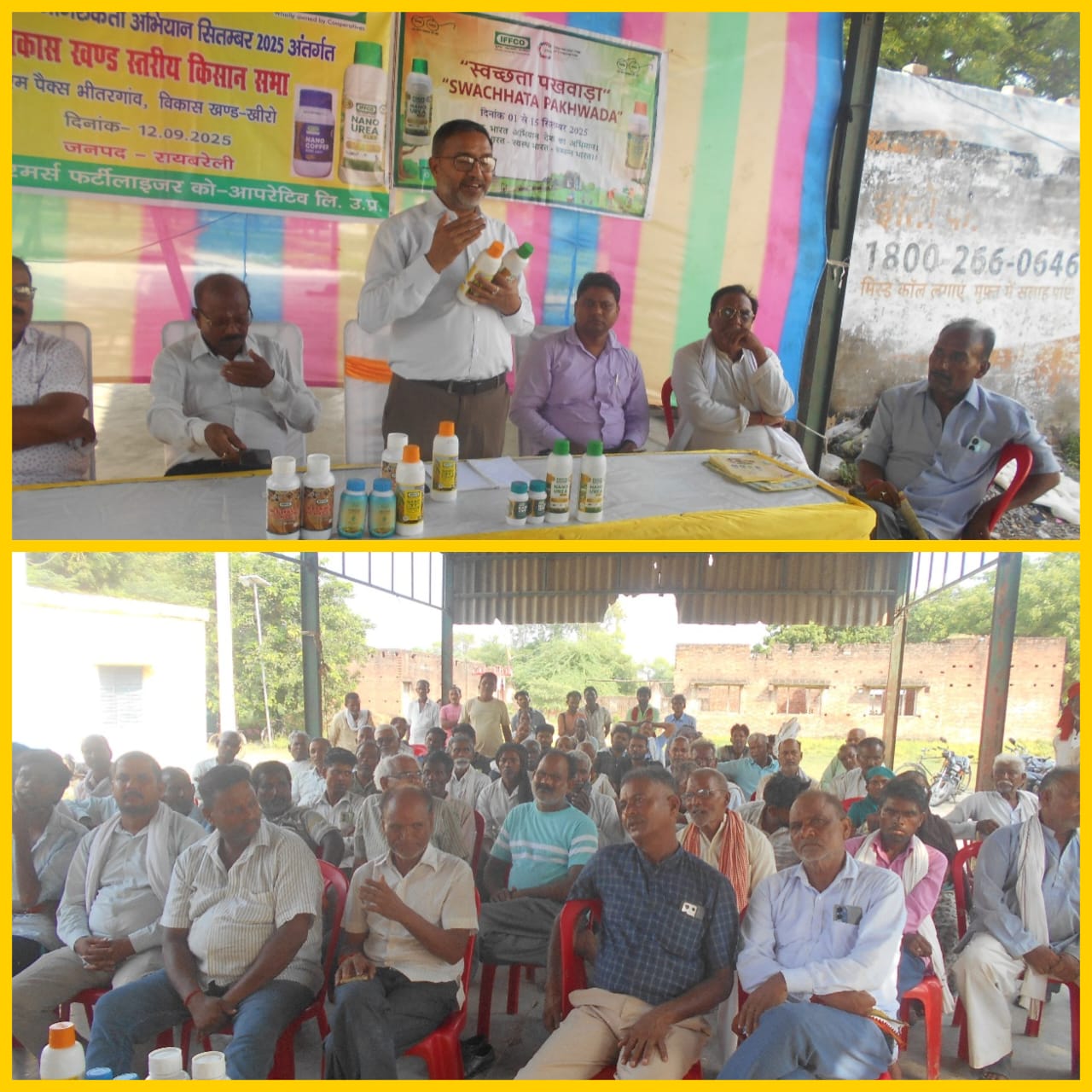 खीरों, रायबरेली। ग्राम भीतरगाँव साधन सहकारी समिति प्रांगण में इफ्को (IFFCO) द्वारा किसान गोष्ठी का आयोजन किया गया। कार्यक्रम में इफ्को के क्षेत्रीय प्रबंधक विनोद कुमार सिंह ने किसानों को कम लागत में अधिक उत्पादन के तरीके बताए।