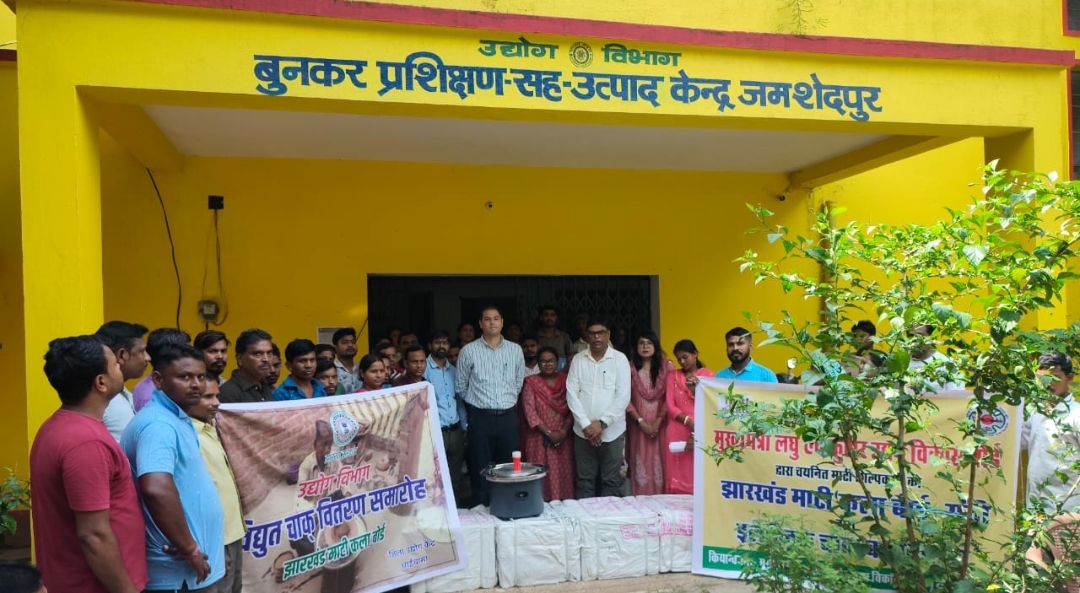 जमशेदपुर (झारखंड)। जमशेदपुर सदर प्रखंड के पुड़ीहासा स्थित बुनकर प्रशिक्षण सह उत्पादन केंद्र में उद्योग विभाग द्वारा झारखण्ड माटी कला बोर्ड एवं मुख्यमंत्री लघु एवं कुटीर उद्यम विकास बोर्ड के तत्वाधान में 90% अनुदान पर 50 विद्युत चाक का वितरण किया गया।