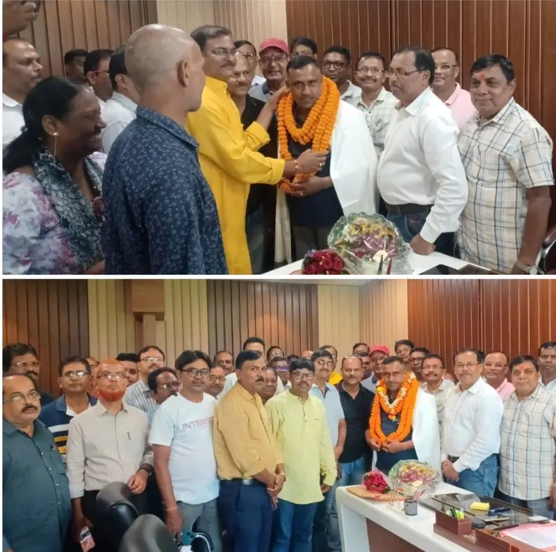 जमशेदपुर (झारखंड)। अखिल झारखंड प्राथमिक शिक्षक संघ पूर्वी सिंहभूम जिला कमेटी के सैकड़ों की संख्या में संघीय पदाधिकारी एवं शिक्षक गण माननीय स्वास्थ्य मंत्री के पहल से झारखंड के राज्य कर्मियों एवं शिक्षकों हेतु स्वास्थ्य बीमा योजना लागू होने पर शिक्षक नेता श्री सुनील कुमार के नेतृत्व में माननीय मंत्री श्री बन्ना गुप्ता जी के आवासीय कार्यालय में मिलकर उन्हें सम्मानित किया।