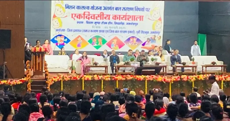 जमशेदपुर (झारखंड)। जिला दण्डाधिकारी सह उपायुक्त अनन्य मित्तल के निर्देशानुसार टाउन हॉल, सिदगोड़ा में मिशन वात्सल्य योजना अंतर्गत बाल संरक्षण के मुद्दे पर एक दिवसीय कार्यशाला आयोजित की गई। कार्यशाला में उप विकास आयुक्त सह एडीएम लॉ एंड ऑर्डर अनिकेत सचान, एसडीएम धालभूम शताब्दी मजूमदार, रूरल एसपी ऋषभ गर्ग, जिला समाज कल्याण पदाधिकारी संध्या रानी, सहायक निदेशक सामाजिक सुरक्षा नेहा संजना खलखो, सभी बीडीओ व अन्य स्टेक होल्डर उपस्थित रहे।