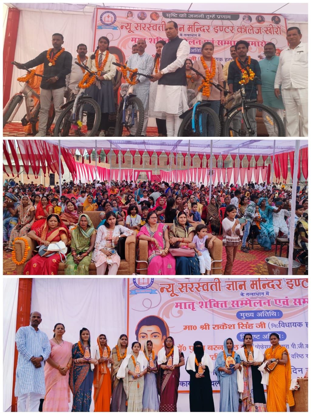 आपको बता दे कि खीरों क्षेत्र के गुणवत्ता पूर्ण शिक्षा का पर्याय, श्रेष्ठ शिक्षण संस्थान न्यू सरस्वती ज्ञान मन्दिर इण्टर कॉलेज खीरों में बच्चों के शैक्षिक विकास में माँ की भूमिका एवं महिला सशक्तीकरण पर परिचर्चा हेतु एक मातृ शक्ति सम्मेलन एवं सम्मान समारोह का आयोजन किया गया। कार्यक्रम का शुभारम्भ नि० विधायक राकेश सिंह , बैसवारा डिग्री कॉलेज की प्रोफेसर डॉ० पुष्पा बरनवाल एवं जयप्रभा यादव ने दीप प्रज्वलित कर किया । विद्यालय की छात्राओं (अनामिका, गुंजन, हिमांशी, साक्षी, निशी, हिमांशी) ने माँ सरस्वती की वन्दना प्रस्तुत की।