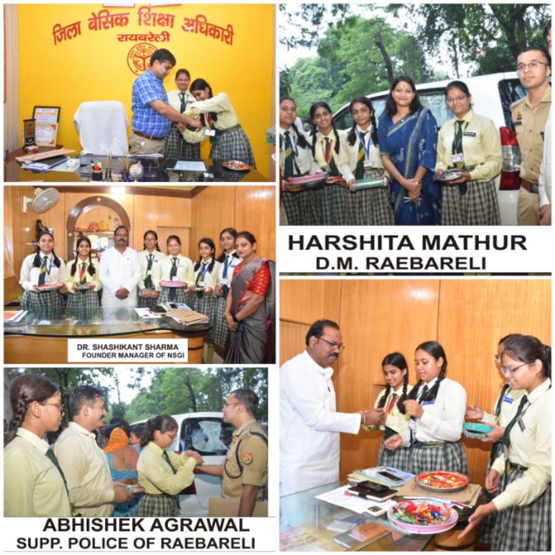 इसके उपरान्त विद्यालय काउंसिल की छात्राओं ने शिक्षकों के साथ जनपद के अधिकारियों को राखी बाँधी इन अधिकारियों में जिलाधिकारी हर्षिता माथुर, पुलिस अधीक्षक अभिषेक अग्रवाल, सिटी मजिस्ट्रेट धीरेंद्र श्रीवास्तव , डीआईओएस संजीव कुमार सिंह, बीएसए शिवेंद्र प्रताप सिंह , मुख्य पुलिस अधिकारी राजेश कुमार सिंह , संस्थापक-प्रबंधक एनएसजीआई डॉ शशिकांत शर्मा , शामिल थे।