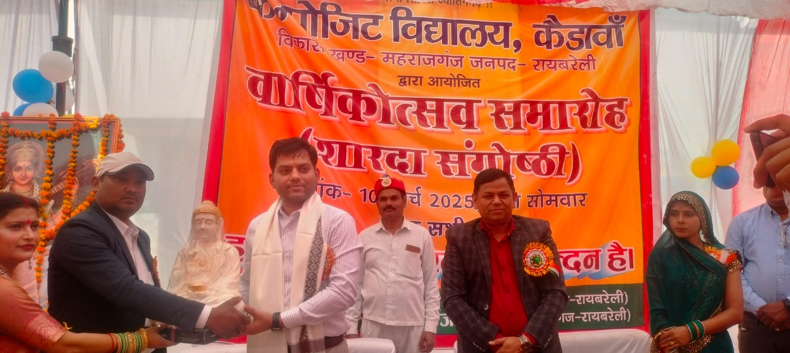 महराजगंज, रायबरेली। क्षेत्र के कंपोजिट विद्यालय कैड़ावा में पहला वार्षिकोत्सव धूमधाम से मनाया गया। कार्यक्रम का शुभारंभ मुख्य अतिथि एसडीएम महराजगंज सचिन यादव और विशिष्ट अतिथि खंड शिक्षा अधिकारी राममिलन यादव के द्वारा शिक्षा की देवी मां सरस्वती के चित्र पर पुष्पार्पण से किया गया, तत्पश्चात बच्चों ने स्टेज पर संस्कृत और राष्ट्र को समर्पित गीत तथा लघु नाटिकाएं प्रस्तुत कर सभी का मन मोह लिया।