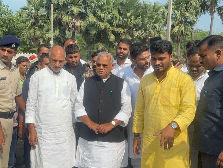पीड़ितों से मिलने पहुंचे केंद्रीय मंत्री जीतन राम मांझी।